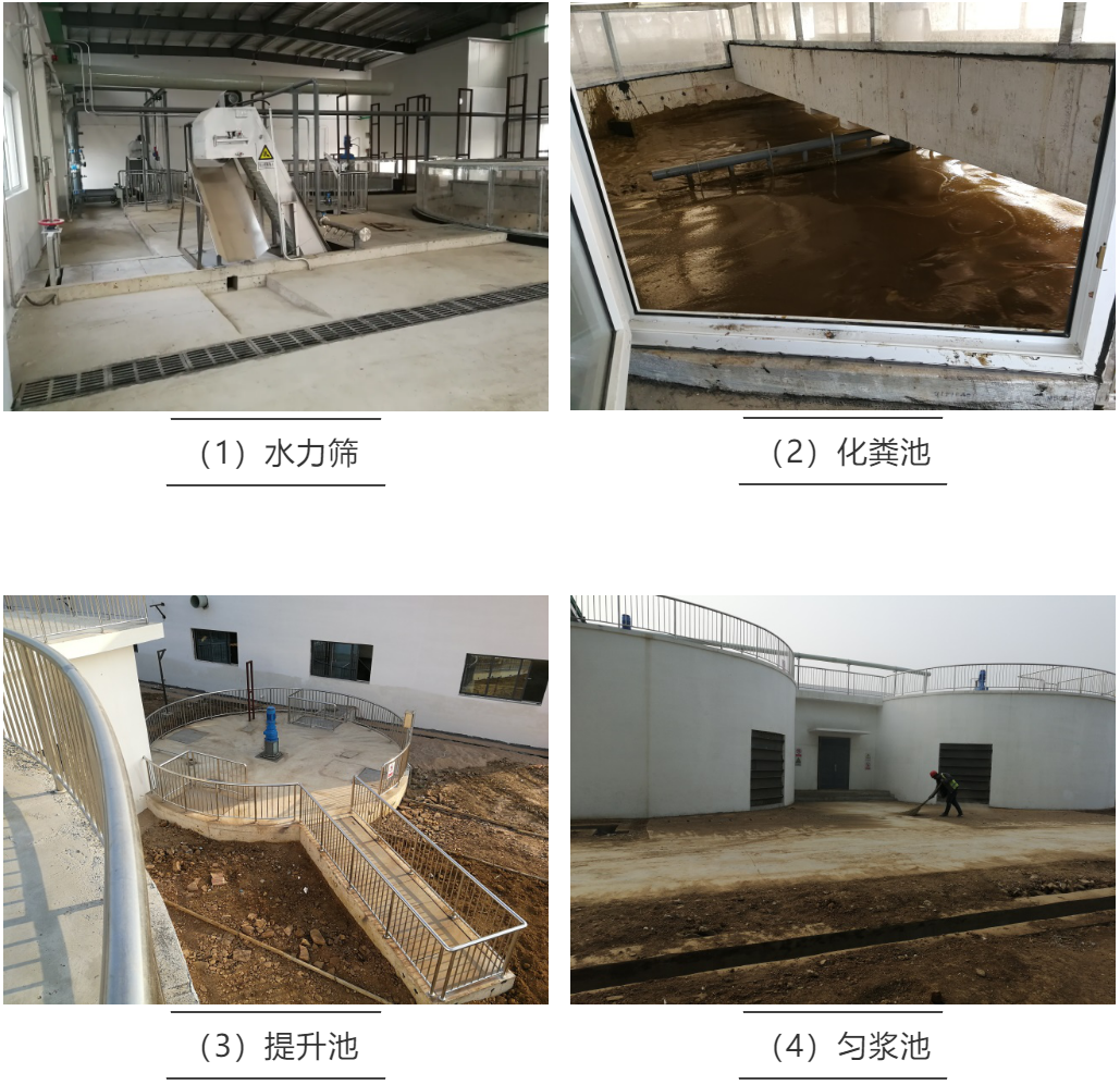 预处理单元将不同性质的各原料分开处理,工艺包括水力筛、化粪池、提升池、匀浆池等。