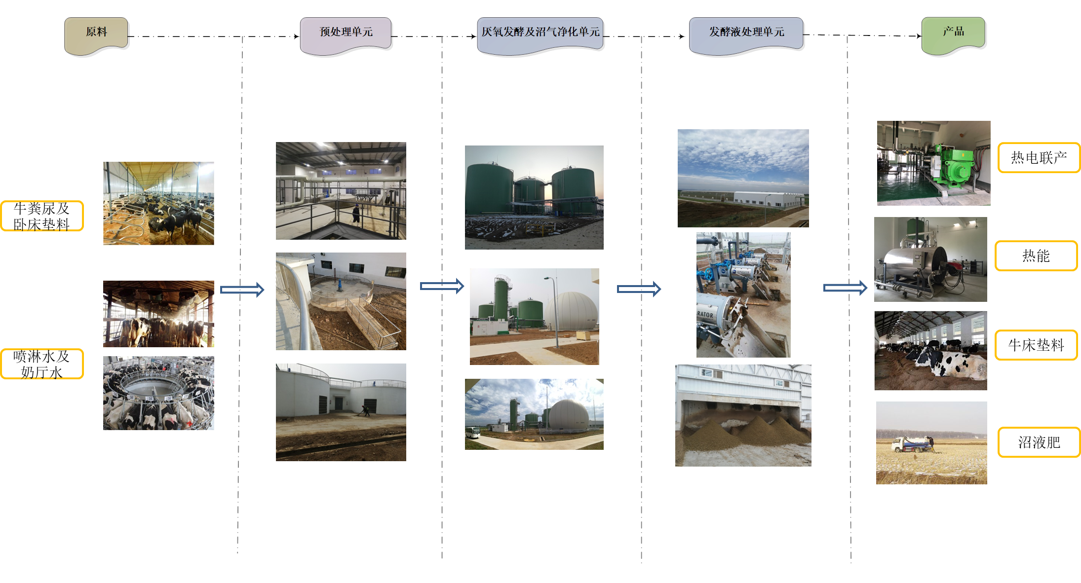 优然平阴项目以优然牧业有限责任公司新建万头牧场生产的牛粪尿等废弃物为原料,采用原料预处理+中温厌氧发酵+三沼综合利用工艺技术路线,处理工艺主要分为预处理单元、厌氧发酵及沼气净化单元和发酵液处理单元。