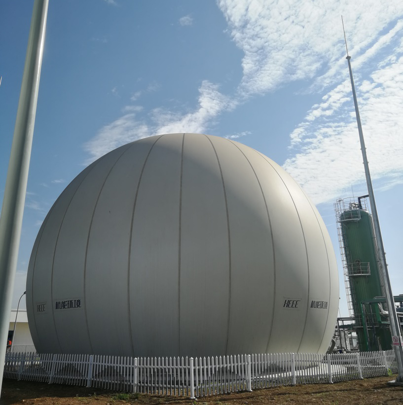 项目中采用双膜干式贮气柜贮存净化后的沼气。贮气柜可抗紫外线、防泄漏,抗拉伸强度强,适用温度为-30~60℃。占地面积小,装置投资较低,施工周期短。