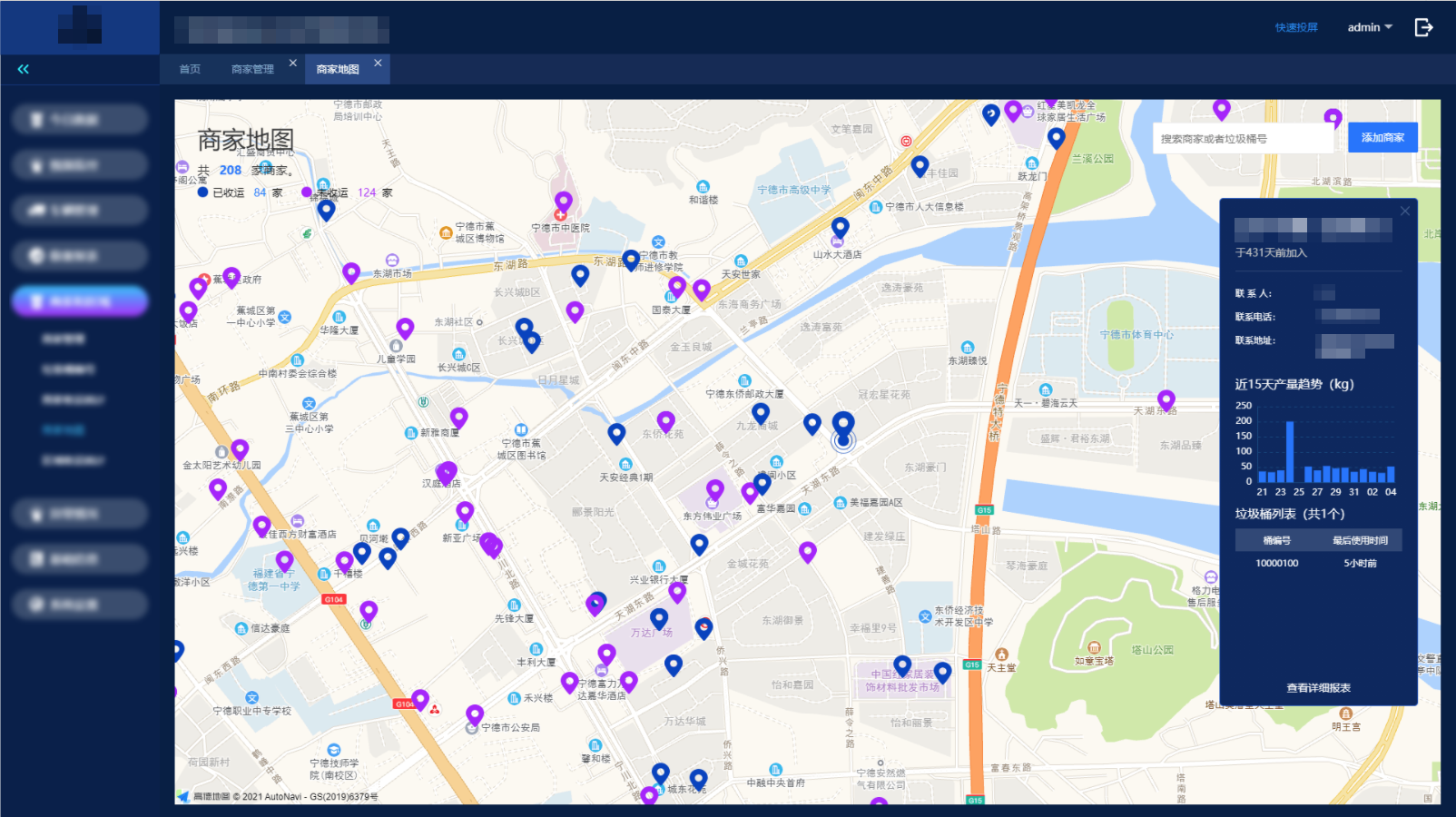 • 建立数字化档案,从源头管理餐饮商家,提升餐厨垃圾质量,处置厂提油率较平台使用前增长0.3%,项目年收益增加近200万元;