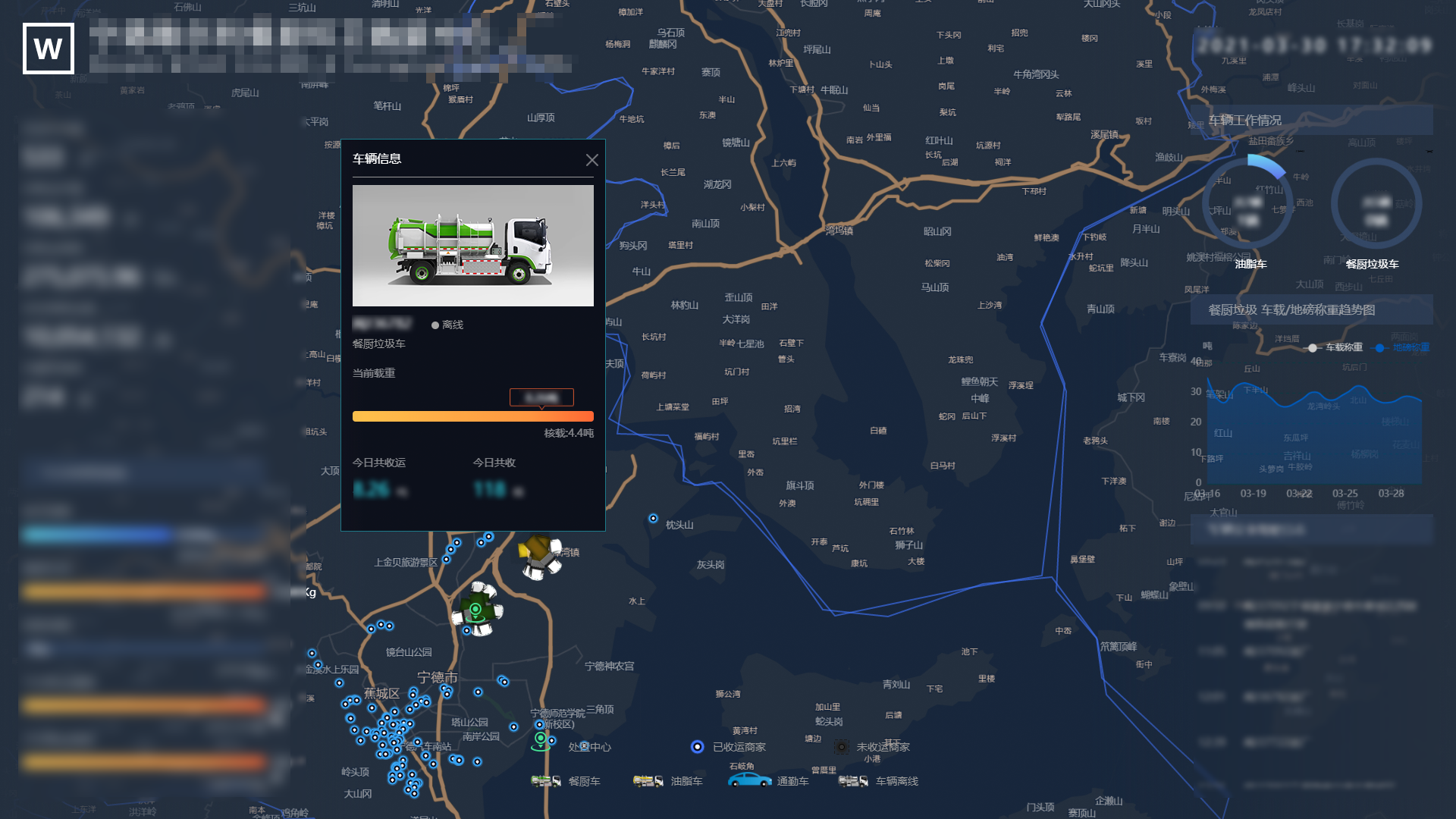 平台实现商家管理、车辆定位、智能路线规划、智能作业辅助、违规预警、视频监控、设备可预测性维护、能耗物耗精细化管理、远程工控、专家诊断、数据分析、自动报表和事件指挥调配等功能,为餐厨垃圾提供从产生源头、收运和处置过程、再到资源化产品去向的全过程监督管理。