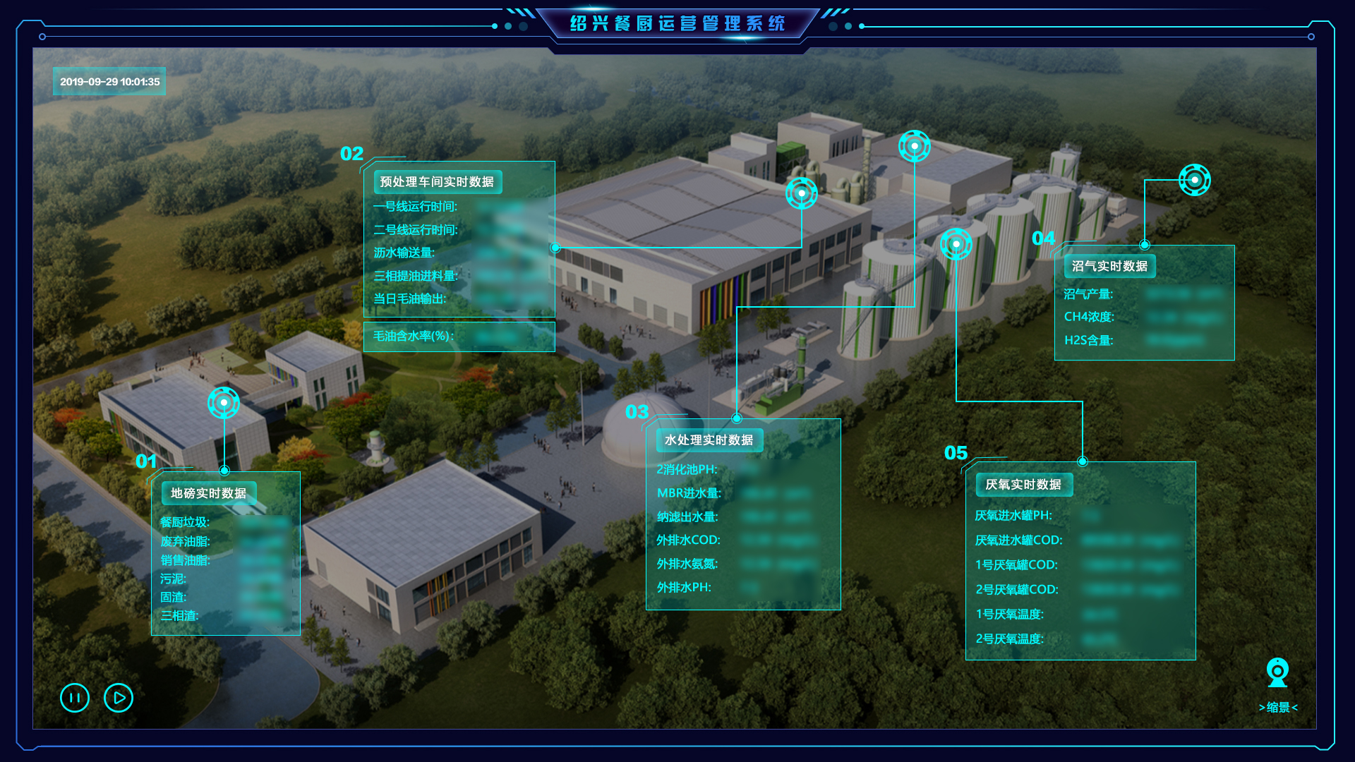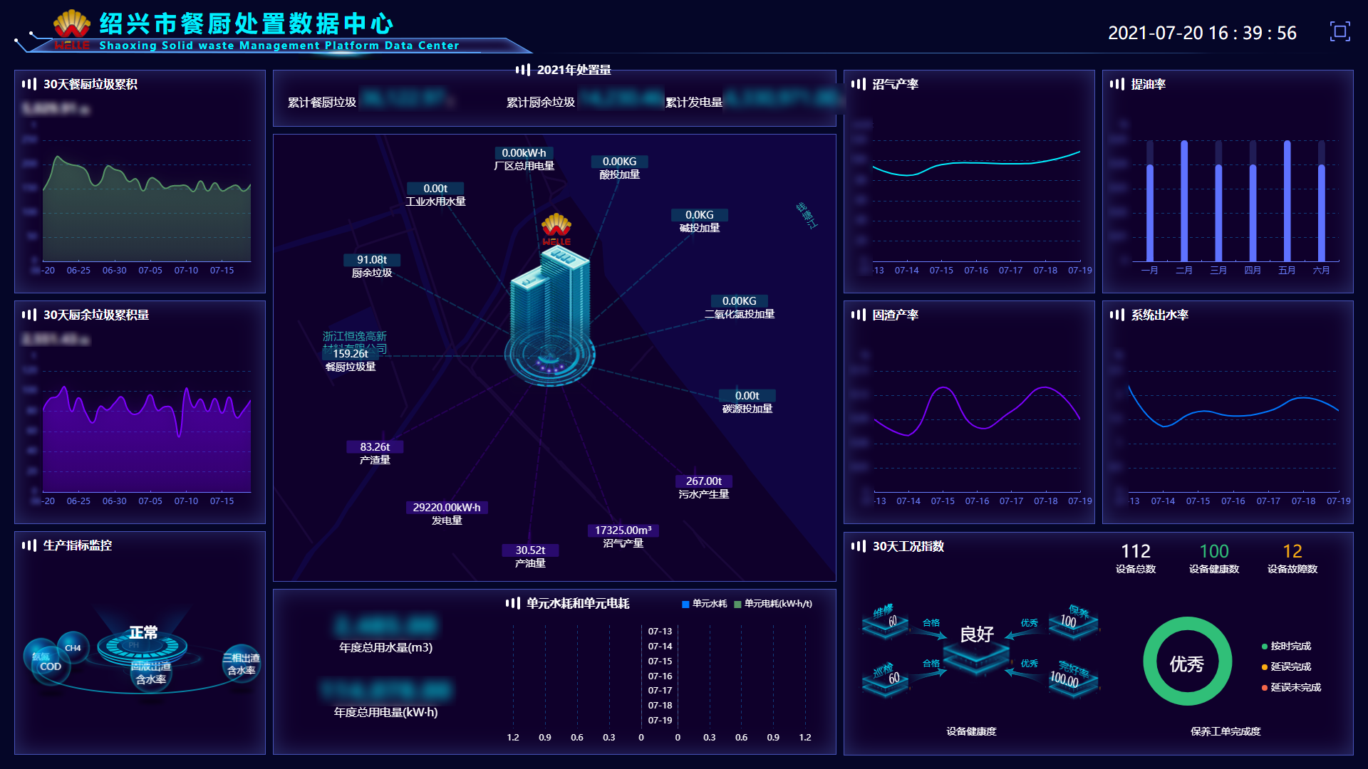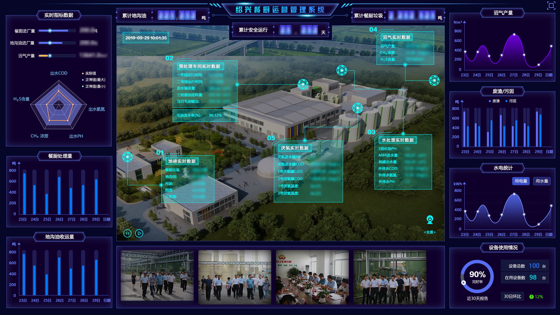 建设数字化的餐厨终端处置厂,通过智慧化生产运营管控体系,整合2D/3D动态拟真工艺中心、远程工控、数据监测、视频监管、智能预警、移动巡检、设备管理、能耗物耗管理等功能,实现处置厂全局态势感知、智能联动、智慧决策提高处置和资源化产出效率,减少生产事故,实现降本增效。